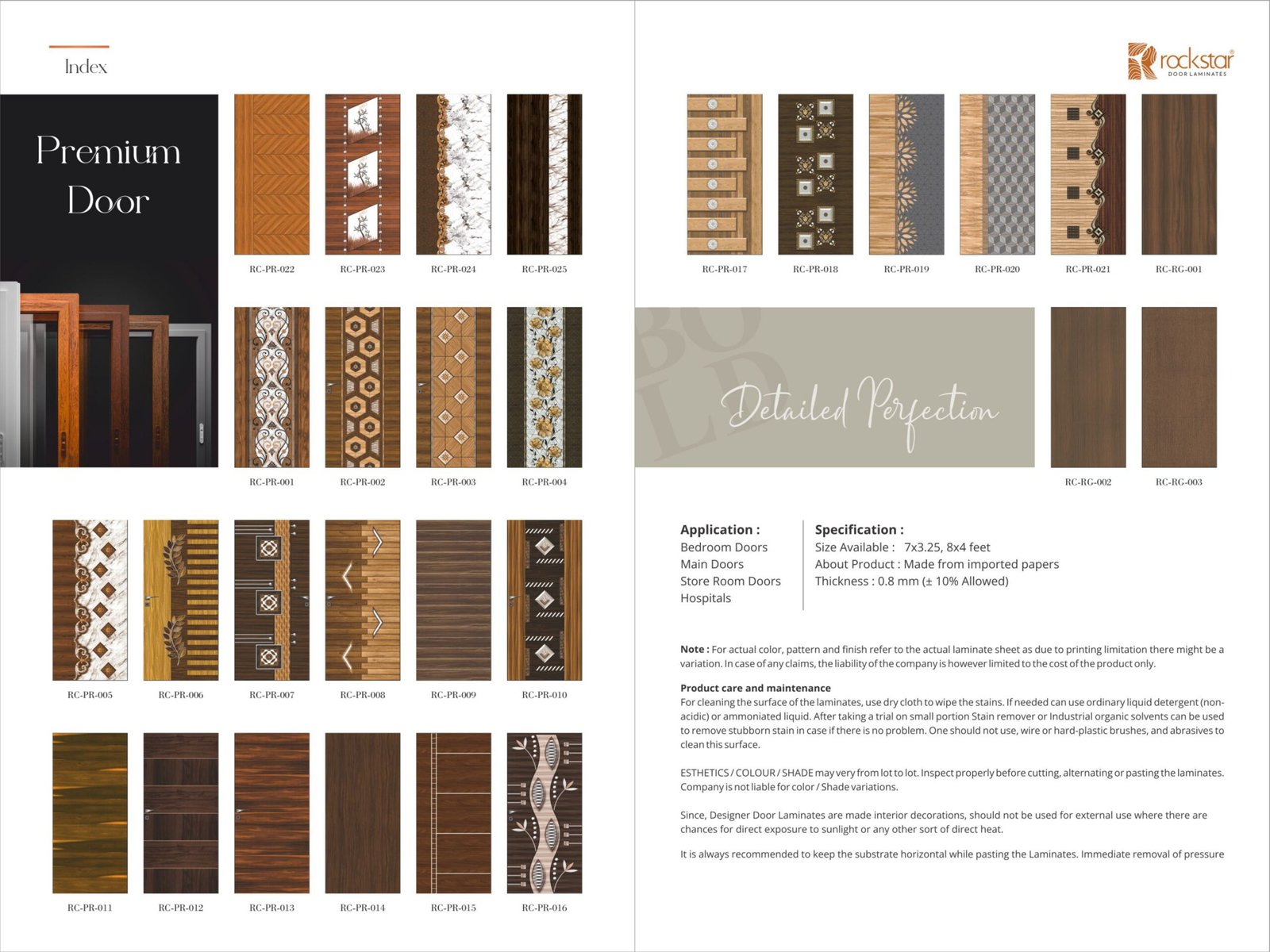 Our high-pressure laminates are meant for indoor use only and should not be used on areas exposed to direct sunlight. Common applications include kitchens, furniture, bathrooms, and offices. Our specialized Door Laminates are suitable for main doors, bedroom doors, and in hospitals